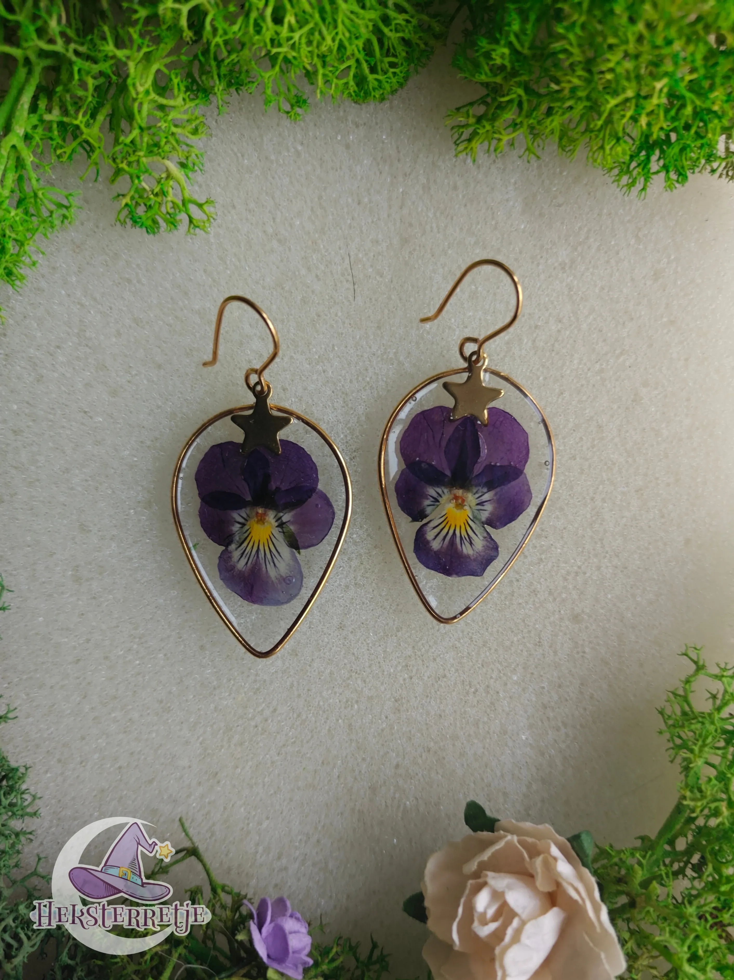 Prachtige druppelvormige oorbellen met zelfgedroogde bloemen. Gemaakt van hars en artistic wire of 24K verguld koperdraad.