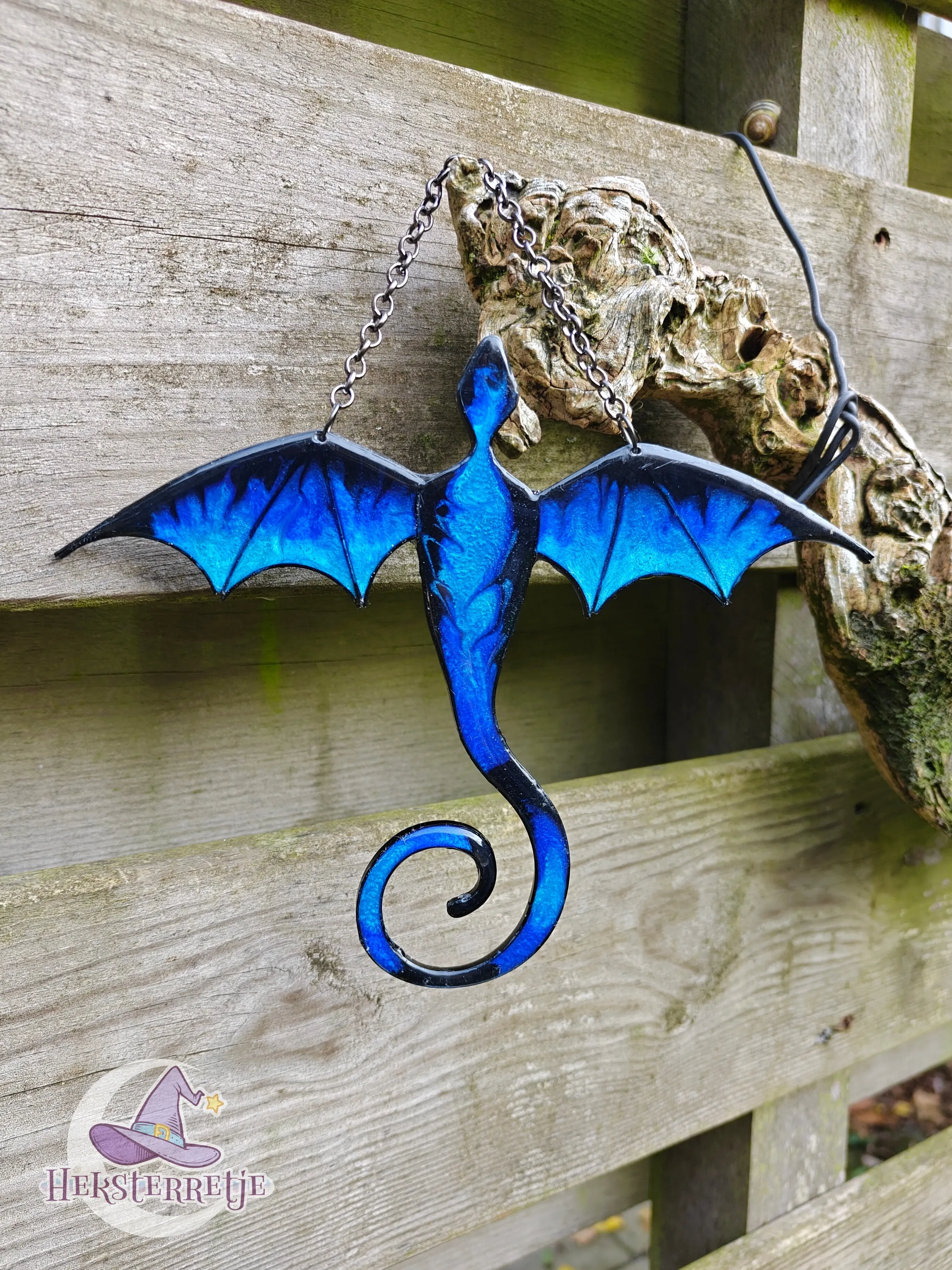 Gave draken gemaakt van hars en aluminiumdraad, ± 19 bij 15 cm groot.