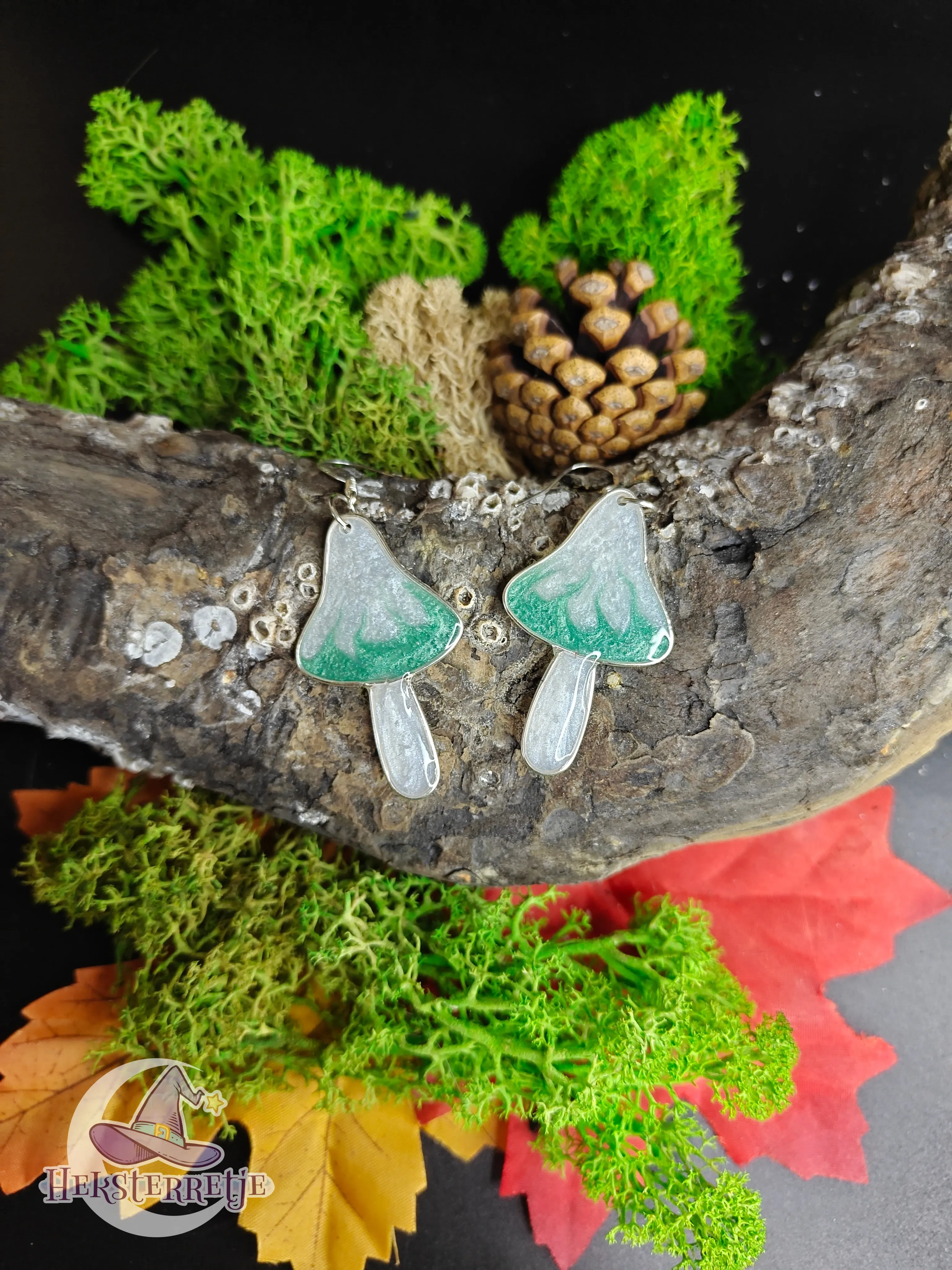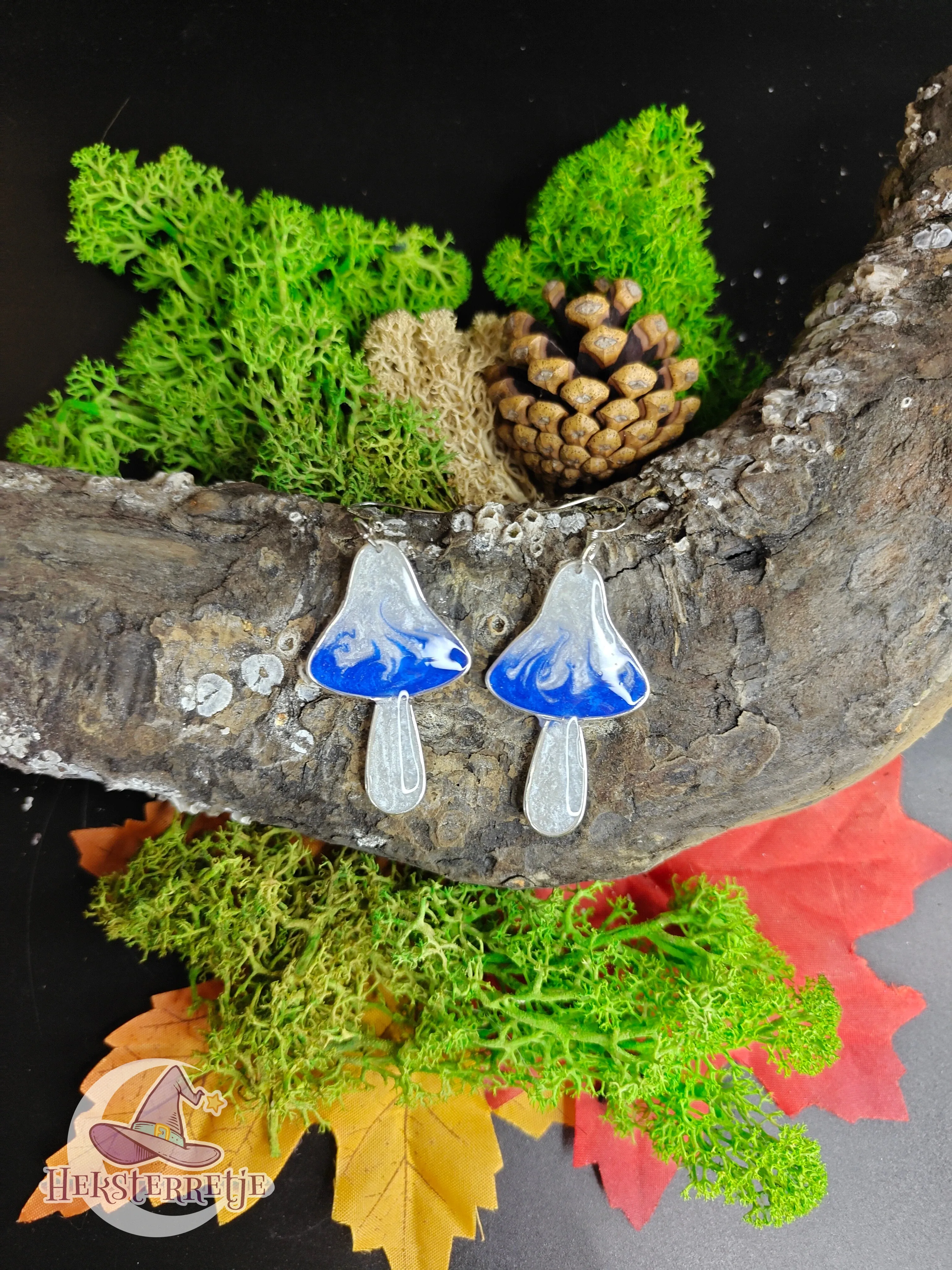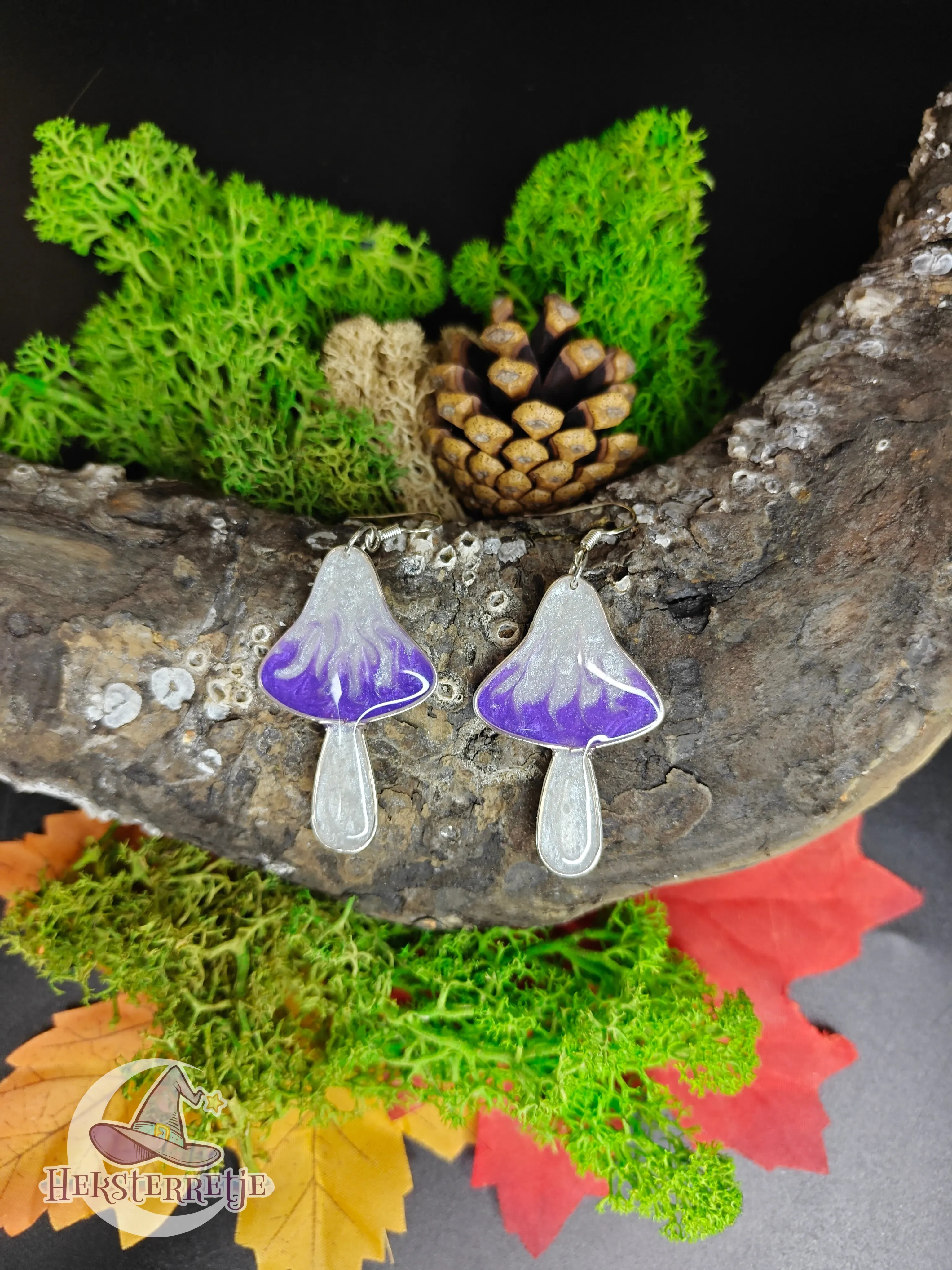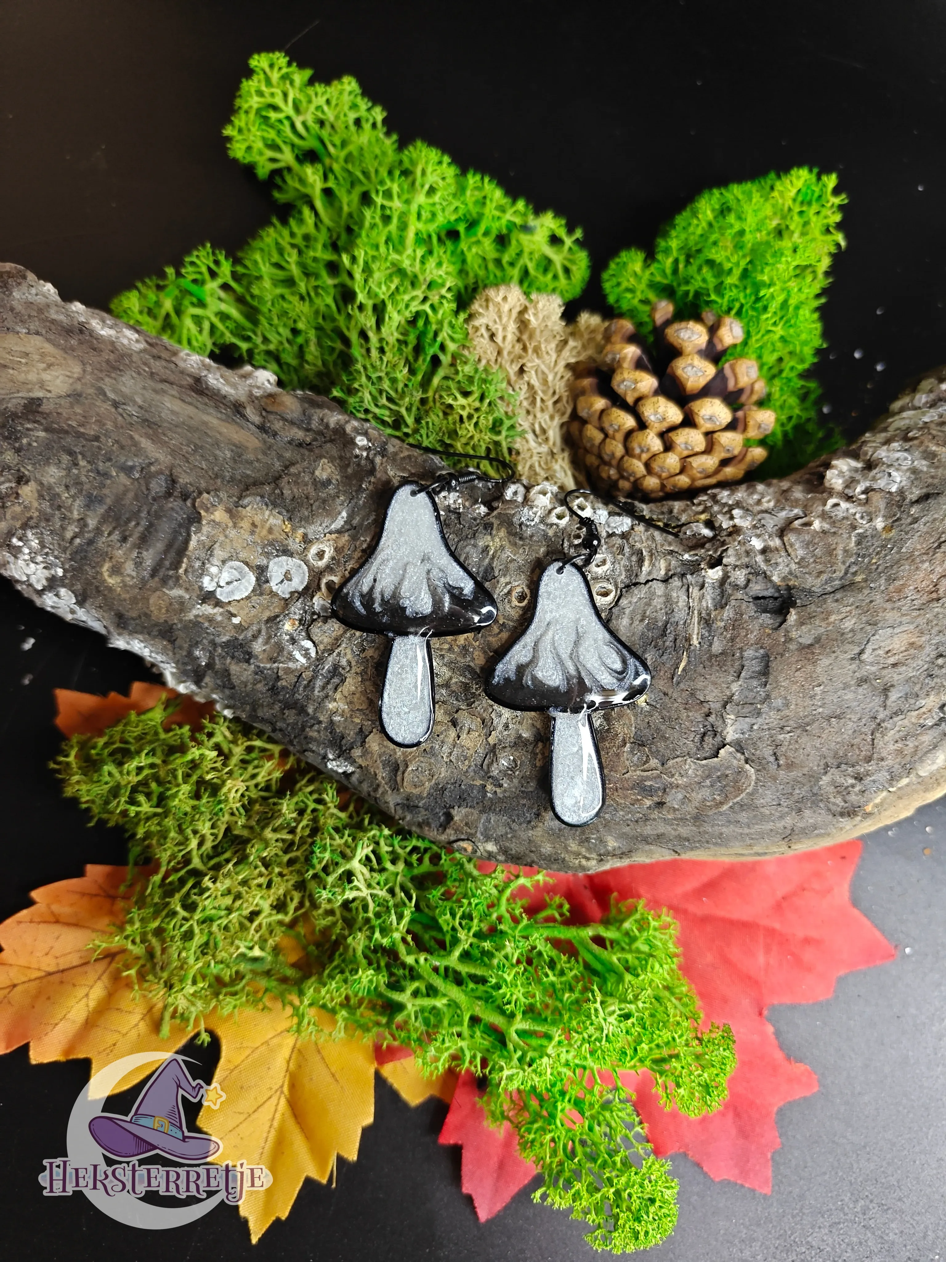 Herfstelijke oorbellen geïnspireerd door de inktzwam. Gemaakt van hars en artistic wire.